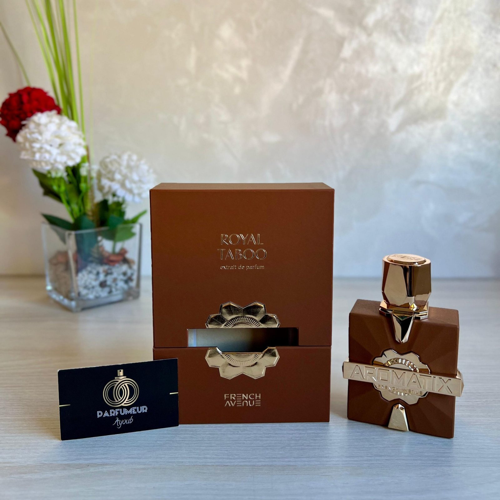Une alchimie envoûtante d’épices, de bois et de tabac – Royal Taboo de la maison Aromatix est une fragrance unisexe captivante, née de la fusion entre mystère oriental et chaleur boisée. Cette création luxueuse signée French Avenue séduit par son équilibre parfait entre intensité, élégance et sensualité.