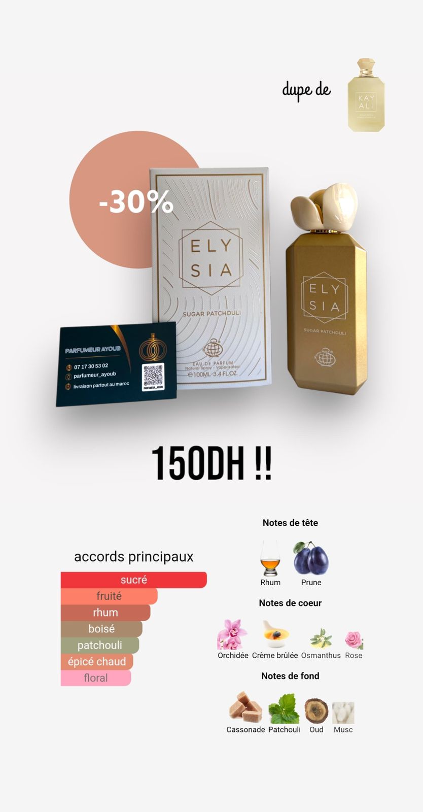 Découvrez le charme sensuel et gourmand d’Elysia Sugar Patchouli de Fragrance World, un parfum pour Femme qui séduit les sens avec une irrésistible symphonie de douceur, d’épices et de chaleur orientale. Ce parfum captivant est conçu pour celles et ceux qui aiment se démarquer avec élégance et intensité, mêlant le charme des notes sucrées à la profondeur du patchouli et à l’opulence du oud.