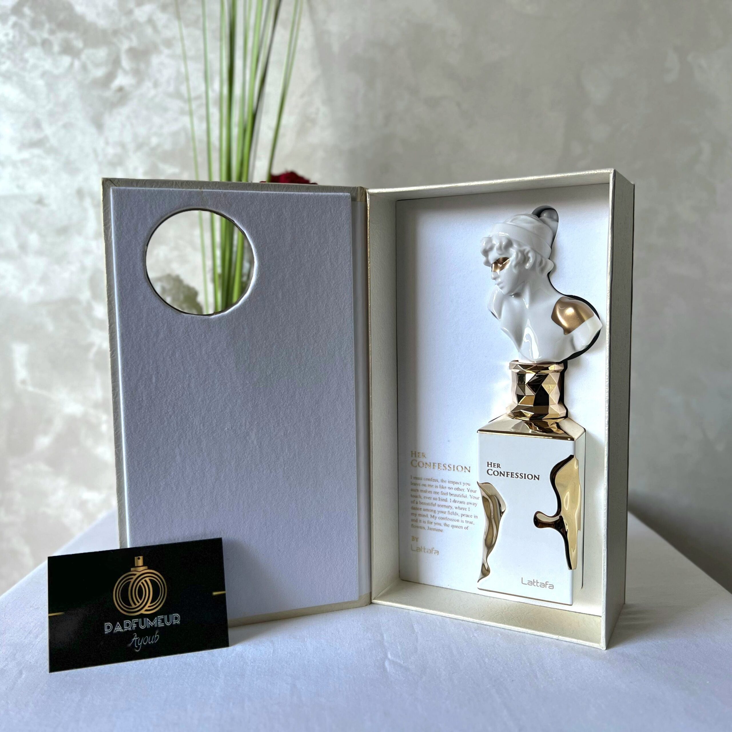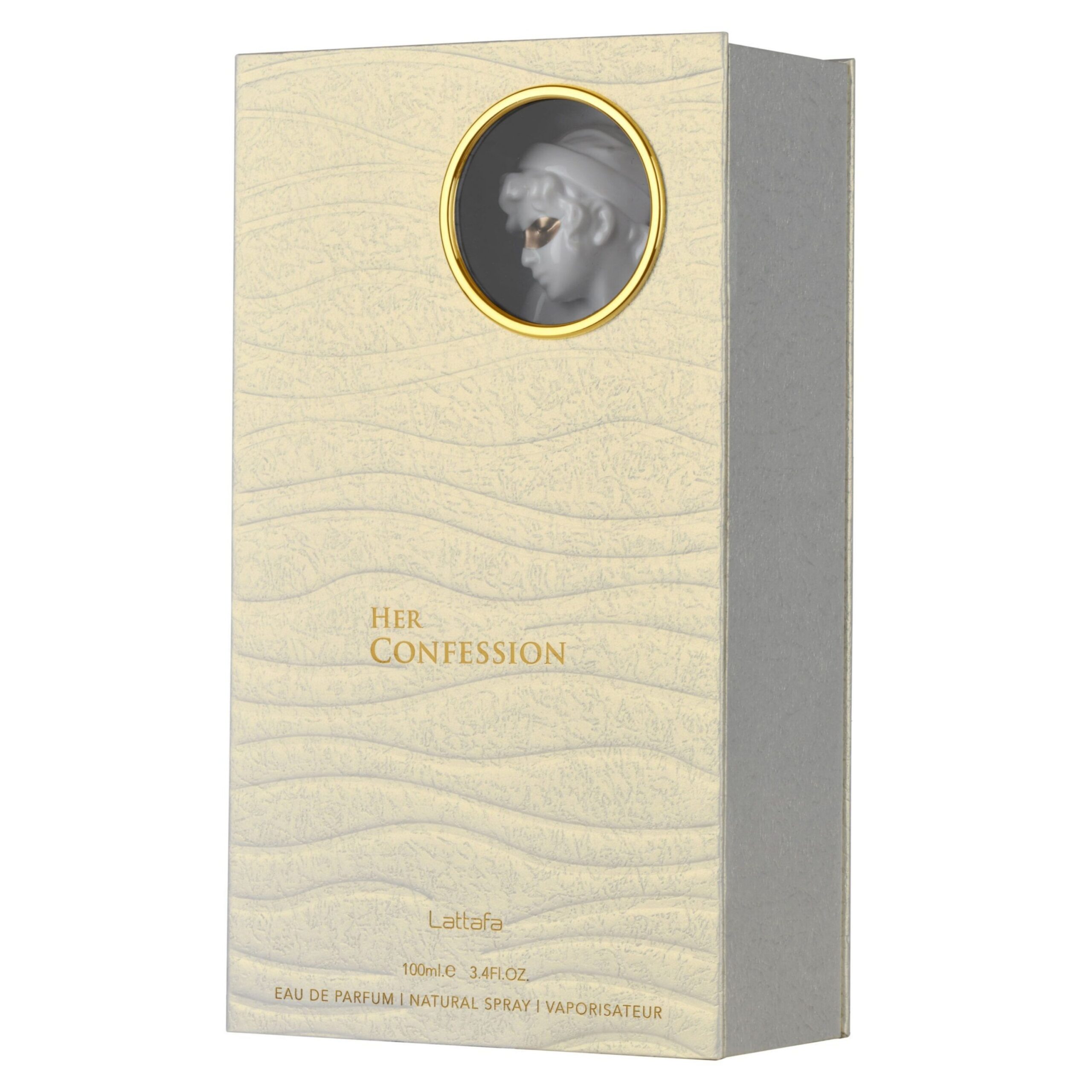 Lattafa Her Confession Eau de Parfum est une fragrance envoûtante pour femme, qui allie avec élégance chaleur, mystère et raffinement. Elle s’ouvre sur un accord captivant de cannelle et de notes mystiques, créant une entrée en matière intrigante et envoûtante. Au fil du temps, un cœur luxueux de jasmin, de tubéreuse et d’encens se révèle, apportant richesse et profondeur florales, tandis que le mahanial sublime la fragrance d’une touche subtile et enchanteresse. Les notes de fond de fève tonka, de musc et de vanille offrent un sillage sensuel et persistant, laissant un sillage de chaleur et de séduction. Her Confession est le parfum idéal pour la femme moderne qui rayonne de confiance, de charme et d’une pointe de mystère, ce qui le rend parfait pour toutes les occasions.