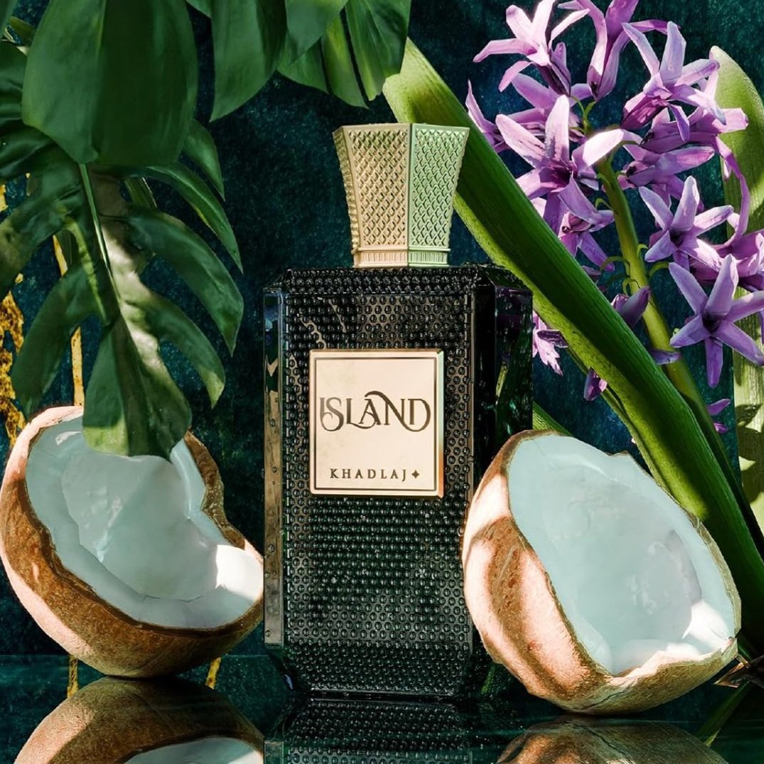 Découvrez Khadlaj Island Extrait de Parfum – un parfum luxueux de 100 ml qui exhale une sophistication tropicale.