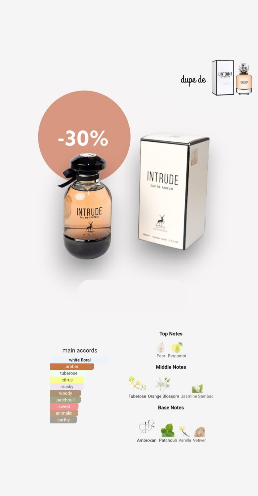 L’Intrude de la Maison Alhambra, une caresse florale-fruitée s’ouvre sur des notes exotiques de grenade épicée entremêlées de lys frais et d’un reflet savonneux d’aldéhydes.
