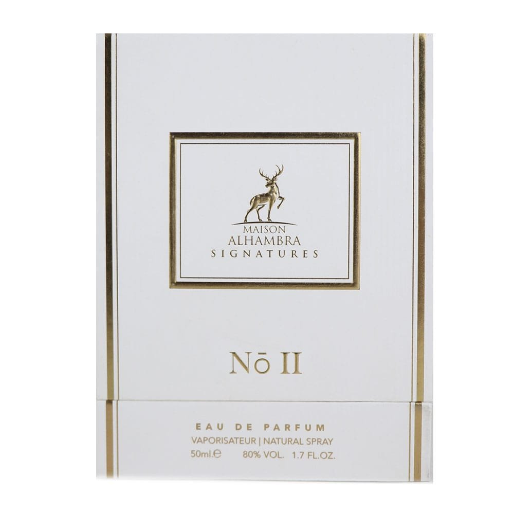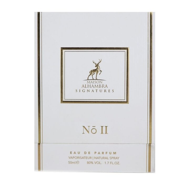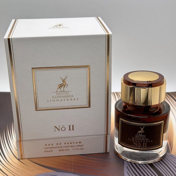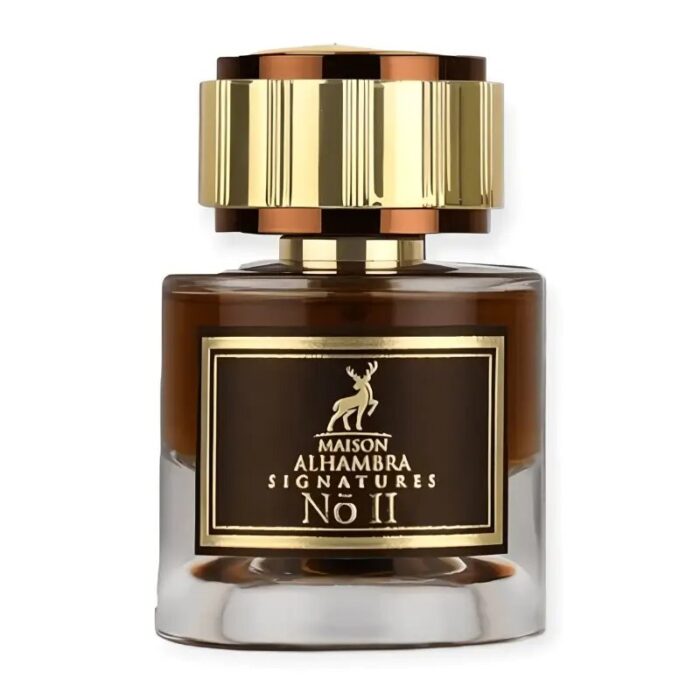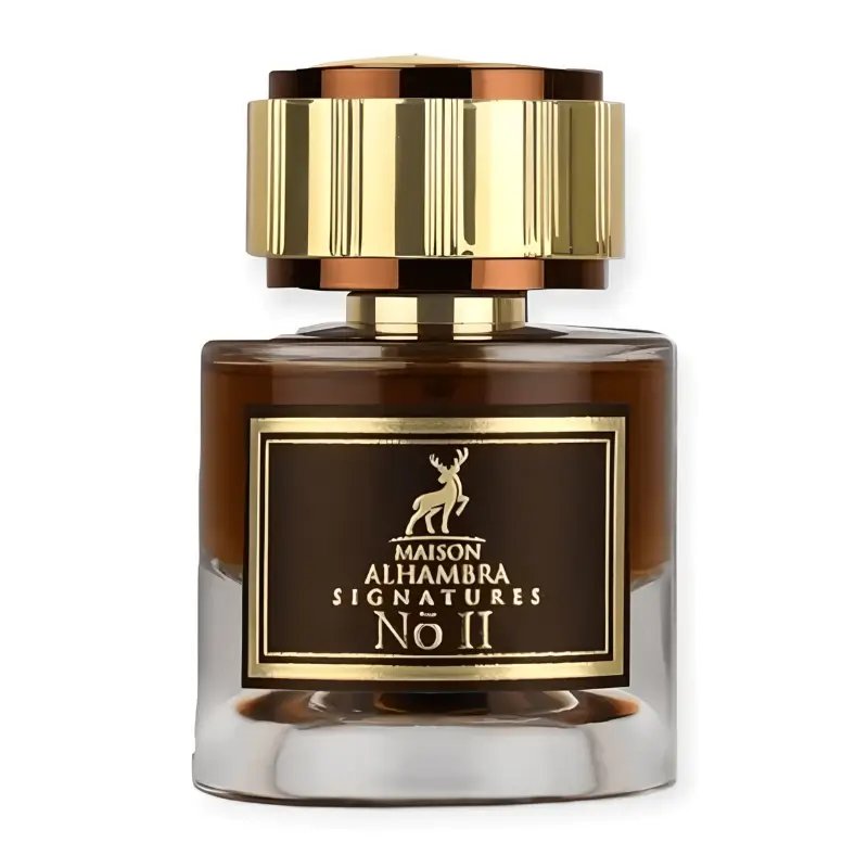 Signatures N° II de Maison Alhambra est un parfum unisexe de la famille des bois orientaux. Ce parfum enchante les sens avec une symphonie de notes enveloppantes et épicées. Les notes de tête s’ouvrent sur une explosion de chaleur et de profondeur, grâce à la cannelle, au oud et à l’encens. Le safran et la noix de muscade apportent une touche d’intensité, tandis que la douceur fruitée de la poire et de la pomme verte offre un contraste rafraîchissant et inattendu.
